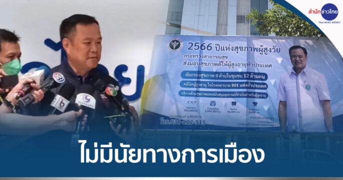 “อนุทิน” แจงย้ำปม “ป้ายนโยบายผู้สูงอายุ” หลังแพทย์ชนบทถามนโยบายเล็กแต่รูป รมว.ใหญ่ พร้อมเปรียบตัวเองเหมือนเป็น “แบรนด์แอมบาสเดอร์” ให้ฟรี ไม่มีนัยทางการเมือง ตอกกลับอย่าเสียเวลากับเรื่องไม่มีผลใดๆ
