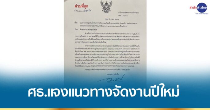 ศธ.ส่งหนังสือชี้แจงแนวทางจัดงานปีใหม่ถึงทุกจังหวัด เน้นทำบุญตักบาตรตามหลักศาสนา ส่วนกิจกรรมอื่น ๆ ดำเนินการได้ตามความเหมาะสม