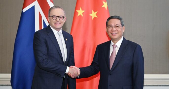 นายกรัฐมนตรีหลี่ เฉียง ของจีน กล่าวกับนายกรัฐมนตรีแอนโทนี อัลบาเนซี ของออสเตรเลียในวันนี้ว่า รัฐบาลปักกิ่งพร้อมที่จะทำงานกับรัฐบาลแคนเบอร์รา ในการรื้อฟื้นการแลกเปลี่ยนในหลายด้านกับออสเตรเลียอีกครั้ง