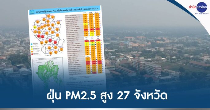 เช้านี้ ฝุ่น PM2.5 เกินค่ามาตรฐาน 27 จังหวัด ภาคเหนือตัวเลขสูงสุดอยู่ที่ 133 มคก./ลบ.ม. พิษณุโลก ค่าฝุ่นสูงต่อเนื่องวันที่ 3