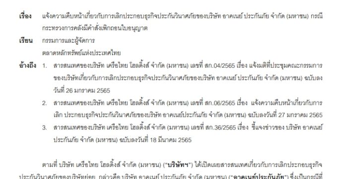 อาคเนย์ประกันภัย เตรียมจัดประชุมวิสามัญผู้ถือหุ้นครั้งที่ 1/2565 จับตา เลิกกิจการหรือไม่