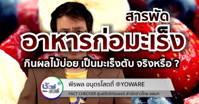 22 พฤษภาคม 2567 – บนโซเชียลมีการแชร์เกี่ยวกับสารพัดอาหารก่อมะเร็ง ทั้งการกินผลไม้เป็นประจำจะทำให้เป็นมะเร็งตับ และการกินปลานิลเลี้ยง เสี่ยงมะเร็งถึง 10 เท่า ?! ศูนย์ชัวร์ก่อนแชร์ ตรวจสอบกับ ศ.ดร.นพ.อิศรางค์ นุชประยูร คณะแพทยศาสตร์ จุฬาลงกรณ์มหาวิทยาลัย ผศ.ดร. กนิฐพร วังใน อาจารย์ประจำภาควิชาวิทยาศาสตร์และเทคโนโลยีการอาหาร คณะอุตสาหกรรมเกษตร มหาวิทยาลัยเกษตรศาสตร์ บางเขน เรณุกา นิธิบุณยบดี รรท.หน.กลุ่มตรวตสอบคุณภาพทางจุลินทรีย์ กรมประมง ตะวัน มีสอาด เกษตรกรผู้เลี้ยงปลานิล อำเภอพานทอง จังหวัดชลบุรี พรชัย บัวประดิษฐ์ ประธานสหกรณ์ผู้เพาะเลี้ยงสัตว์น้ำชลบุรี แสงเดือน นาคสุวรรณ ศูนย์วิจัยและพัฒนาการเพาะเลี้ยงสัตว์น้ำจืด เขต 7 กรมประมง ภก.ประพนธ์ อางตระกูล อดีตรองเลขาธิการคณะกรรมการอาหารและยา รศ.ดร.เจษฎา เด่นดวงบริพันธ์ คณะวิทยาศาสตร์ จุฬาลงกรณ์มหาวิทยาลัย ศ.พิเศษ นพ.ธีรวุฒิ คูหะเปรมะ ผู้อำนวยการโรงพยาบาลวัฒโนสถ โรงพยาบาลมะเร็งกรุงเทพ ดร.มลฤดี […]