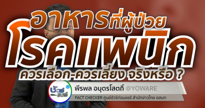 ชัวร์ก่อนแชร์ : อาหารที่ผู้ป่วยโรคแพนิกควรเลือก-ควรเลี่ยง จริงหรือ ?