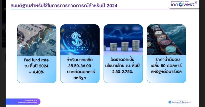 บล.อินโนเวสท์ เอกซ์ ประเมินโครงการกระตุ้นเศรษฐกิจ หนุนจีดีพีปี 2567 โต 2.5% คาด กนง.มีโอกาสลดดอกเบี้ย 1.0% ในปี 2567 และ 2568 ชี้เศรษฐกิจและการลงทุนกำลังเปลี่ยนผ่านเข้ายุคใหม่ แนะลงทุนด้วยความระมัดระวัง คาด SET Index ปรับตัวขึ้นแตะระดับ 1,500 จุด ภายในปี 2567 และ 1,550 จุดในปี 2568