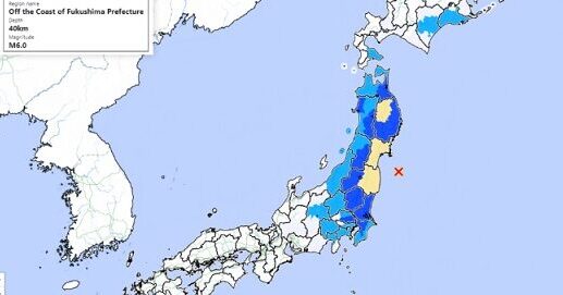 สำนักงานอุตุนิยมวิทยาญี่ปุ่นรายงานว่า เกิดแผ่นดินไหวขนาด 6.0 ที่บริเวณพื้นที่ทางตะวันออกเฉียงเหนือของญี่ปุ่นเมื่อเวลาประมาณเที่ยงวันตามเวลาในญี่ปุ่น แต่ไม่มีประกาศเตือนภัยสึนามิ