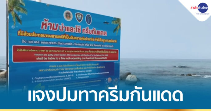 อุทยานแห่งชาติเขาแหลมหญ้าฯ แจงป้ายห้ามทาครีมกันแดดลงเล่นน้ำทะเล หาดแม่รำพึง ไม่เกี่ยวโยงกรณีคราบน้ำมัน แต่เพื่อป้องกันผลกระทบต่อปะการังและสิ่งแวดล้อมในท้องทะเล