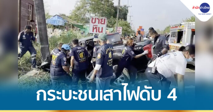 คนขับกระบะหลับในพุ่งชนเสาไฟตาย 4 เจ็บ 3