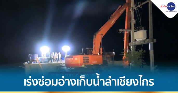 เจ้าหน้าที่ยังคงเร่งระดมซ่อมอ่างเก็บน้ำลำเชียงไกร ตอนล่าง อ.โนนไทย จ.นครราชสีมา ที่เกิดแนวคันดินทรุดตัว ตลอดทั้งคืน