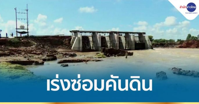 ปริมาณน้ำเหนือสันอ่างเก็บน้ำลำเชียงไกรตอนล่าง ลดฮวบ มองเห็นสันดอนดินโผล่ เจ้าหน้าที่เร่งซ่อมแซมจุดคันดินแตกชำรุด เพื่อให้แล้วเสร็จใน 7 วัน