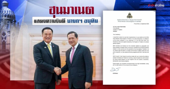 “ฮุน มาเนต” โพสต์ยินดี “อนุทิน” หวังฟื้นสัมพันธ์ไทย-กัมพูชา