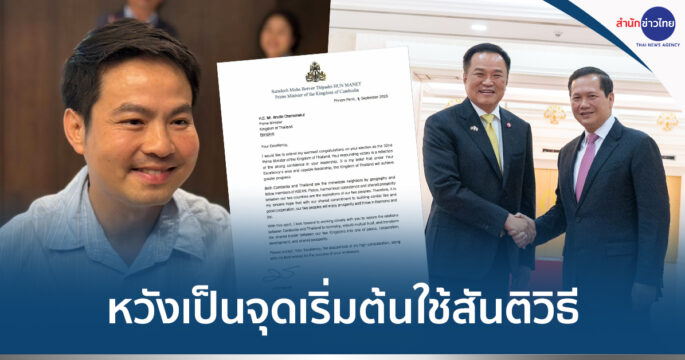 7 ก.ย. – “ฮุน มาเนต” โพสต์ยินดี “อนุทิน” ได้รับการแต่งตั้งเป็นนายกรัฐมนตรี หวังฟื้นสัมพันธ์ไทย-กัมพูชา เปลี่ยนพรมแดนเป็นเขตแดนแห่งสันติภาพและความเจริญรุ่งเรืองร่วมกัน ฮุน มาเนต นายกรัฐมนตรีกัมพูชา โพสต์เฟซบุ๊ก โชว์เอกสารแสดงความยินดีกับ นายอนุทิน ชาญวีรกูล ในฐานะได้รับการแต่งตั้งเป็นนายกรัฐมนตรี โดยระบุข้อความว่า ข้าพเจ้าขอแสดงความยินดีอย่างยิ่งกับชัยชนะของท่านในการเลือกตั้งเป็นนายกรัฐมนตรีคนที่ 32 ของประเทศไทย ชัยชนะครั้งนี้สะท้อนถึงความเชื่อมั่นที่ประชาชนมีต่อความเป็นผู้นำของท่าน และข้าพเจ้าเชื่อมั่นว่าภายใต้การนำของท่าน ประเทศไทยจะมีความก้าวหน้ายิ่งขึ้น ในฐานะประเทศเพื่อนบ้าน และสมาชิกอาเซียน ข้าพเจ้าหวังเป็นอย่างยิ่งว่า เราจะได้ทำงานร่วมกันอย่างใกล้ชิด เพื่อเสริมสร้างความสัมพันธ์อันดี และความร่วมมือระหว่างกัน เพื่อสร้างความเจริญรุ่งเรืองอย่างสันติสุขร่วมกันของประชาชนทั้งสองประเทศ ข้าพเจ้าพร้อมที่จะทำงานร่วมกับท่านเพื่อฟื้นฟูความสัมพันธ์ระหว่างกัมพูชาและไทย สร้างความไว้วางใจซึ่งกันและกัน และเปลี่ยนพรมแดนของเราให้เป็นเขตแดนแห่งสันติภาพและความเจริญรุ่งเรืองร่วมกันตลอดไป.-สำนักข่าวไทย