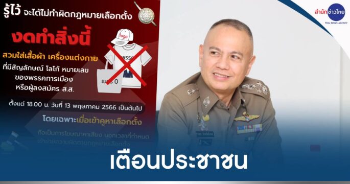 ศลต.ตร. ย้ำเตือนประชาชน งดสวมใส่เสื้อผ้า เครื่องแต่งกาย มีสัญลักษณ์พรรคการเมือง – ผู้สมัคร เข้าคูหาเลือกตั้ง ส่วนภารกิจขนส่งบัตรเลือกตั้งเรียบร้อยแล้ว ถึงที่หมายทั่วประเทศอย่างปลอดภัย