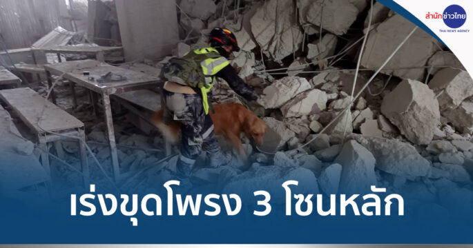 เครื่องจักรหนักเดินหน้าเต็มกำลัง “หยิบ ยก รื้อ” แผ่นปูน-โครงเหล็ก หลังยังไม่มีสัญญาณพบผู้สูญหายเพิ่ม ด้านนายกสภาวิศวกรเผยเจ้าหน้าที่เร่งขุดโพรง 3 โซนหลัก พร้อมส่งทีมกู้ภัยฯ ค้นหาผู้สูญหาย หวังพบผู้รอดชีวิต