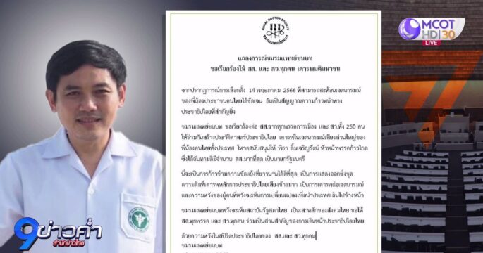 ชมรมแพทย์ชนบท เรียกร้องให้ ส.ส. และ ส.ว. เคารพเสียงประชาชน ในการโหวตเลือกนายกรัฐมนตรี ร่วมเป็นส่วนสำคัญของการเดินหน้าประชาธิปไตยไทย