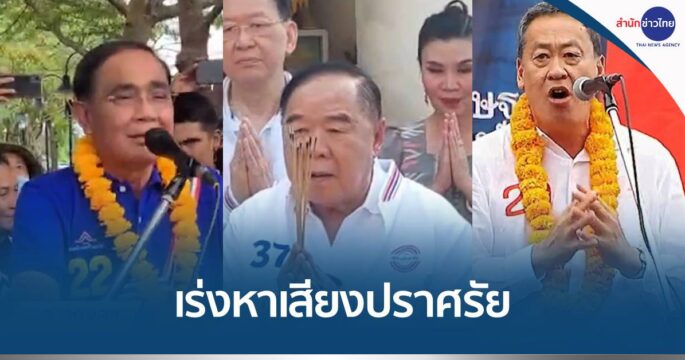 บรรยากาศการหาเสียงแต่ละพรรค เร่งลงพื้นที่ขอคะแนนเสียงช่วง 2 สัปดาห์สุดท้ายก่อนการเลือกตั้งวันที่ 14 พฤษภาคมนี้ ทั้ง “ลุงตู่” ปราศรัยเวทีแทบแตก จ.สงขลา ด้านพรรคพลังประชารัฐเปิดเวทีปราศรัยใหญ่ จ.ขอนแก่น ขณะที่พรรคเพื่อไทยมั่นใจ ได้ ส.ส. เกินครึ่ง ส่วนภูมิใจไทยอ้อนขอปักธงในอุตรดิตถ์