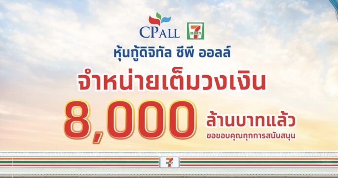 กรุงเทพฯ 24 พ.ค.-หุ้นกู้ดิจิทัล “ซีพี ออลล์” ตอกย้ำความสำเร็จ ตอบโจทย์ลงทุน ประชาชนจองซื้อผ่านแอปฯเป๋าตังเกินคาด เต็มวงเงิน 8,000 ล้านบาท ภายใน 15 นาที เปิดโอกาสเข้าถึงการลงทุนในธุรกิจค้าปลีกชั้นนำอย่างทั่วถึงและเท่าเทียม