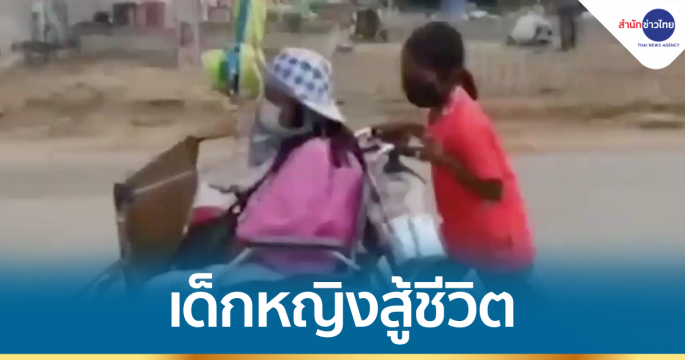 ชีวิตต้องสู้! เด็กหญิงวัย 9 ขวบ ต้องตากแดดตากฝนเข็นรถให้แม่พิการเป็นอัมพฤกษ์วันละ 12 ชั่วโมง ตระเวนขายสลากกินแบ่งรัฐบาลหวังได้เงินมาใช้จ่าย