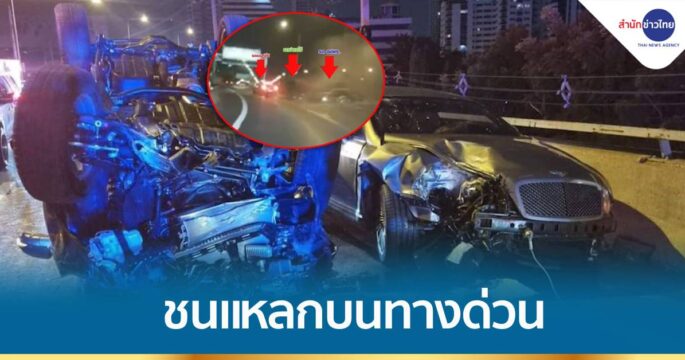 เปิดภาพ เบนท์ลีย์ซิ่งชนแหลกบนทางด่วน เจ็บ 4