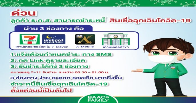 ธ.ก.ส.เพิ่มช่องทางชำระสินเชื่อฉุกเฉินโควิด-19