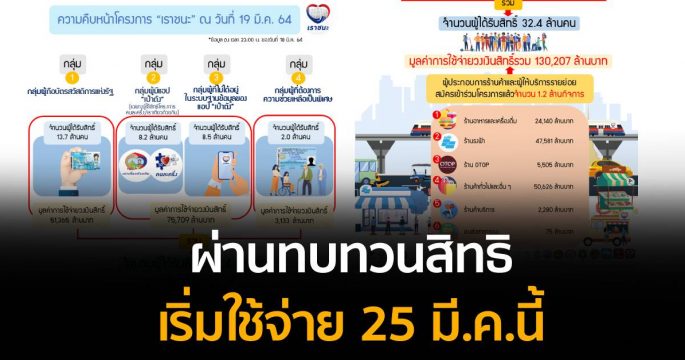 คลัง ย้ำผู้ผ่านทบทวนสิทธิ “เราชนะ” เริ่มใช้จ่าย 25 มี.ค.นี้ ล่าสุดโครงการเราชนะใช้จ่ายแล้ว 1.3 แสนล้านบาท