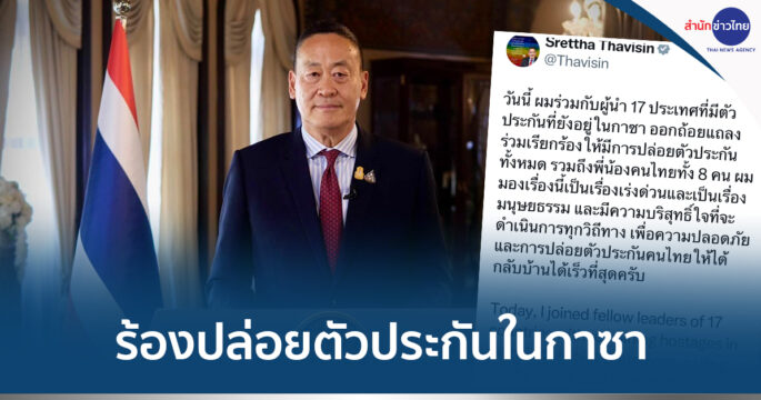 “เศรษฐา” ร่วมผู้นำ 17 ประเทศ ออกแถลงการณ์ เรียกร้องปล่อยตัวประกันทั้งหมดในกาซา