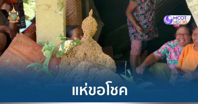 แห่ขอโชคจอมปลวกคล้ายเศียรพระ