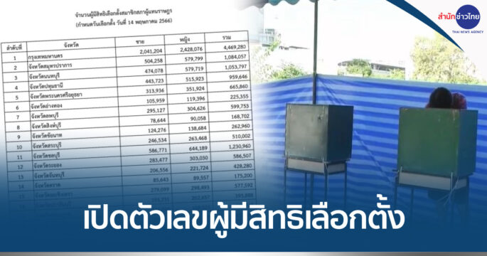 เปิดข้อมูลมีสิทธิเลือกตั้ง ส.ส. ทั่วประเทศ 14 พ.ค.66 รวม 52.2 ล้านคน กทม. มากสุด 4.4 ล้าน ระนอง น้อยสุด 1.3 แสนคน