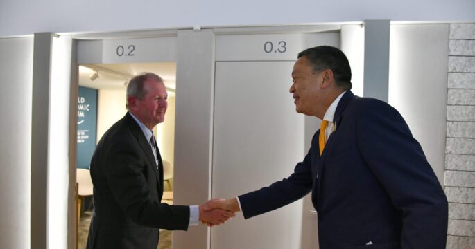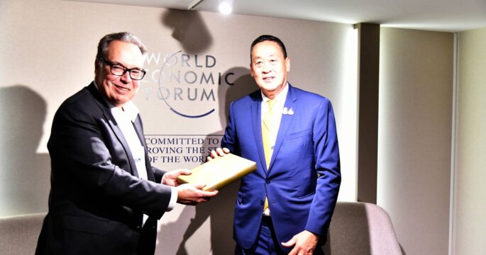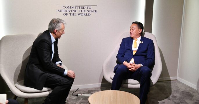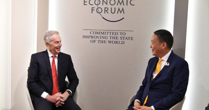 ผู้สื่อข่าวรายงานภารกิจนายเศรษฐา ทวีสิน นายกรัฐมนตรีและรัฐมนตรีว่าการกระทรวงการคลัง ระหว่างร่วมประชุม World Economic Forum(WEF) ที่เมืองดาวอส สมาพันธรัฐสวิส วานนี้(17 ม.ค.) เวลา 16.30 น. (ตามเวลาท้องถิ่นเมืองดาวอส ซึ่งช้ากว่าไทย 6 ชั่วโมง) นายกรัฐมนตรี พบหารือกับนาย Tony Blair ประธานกรรมการบริหาร Tony Blair Institute of Global Change และอดีตนายกรัฐมนตรีสหราชอาณาจักร ณ ศูนย์ประชุม Congress Centre เมืองดาวอส สมาพันธรัฐสวิส