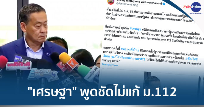 รักษาการโฆษกพรรคเพื่อไทย โพสต์คลิป “เศรษฐา” พูดชัดไม่แก้ ม.112 หากต้องการเสียงสนับสนุนจาก สว. และพรรคการเมือง