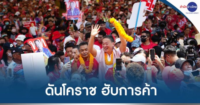 ‘เศรษฐา’ ชูนโยบายดันโคราชเป็นฮับการค้าทัดเทียมมหานครทั่วโลก ขอพี่น้องเลือกเพื่อไทยยกจังหวัด นำพาประชาชนอยู่ดีกินดี