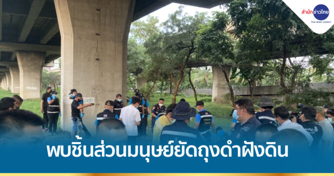 ตำรวจเข้าตรวจสอบชิ้นส่วนมนุษย์ถูกหั่นแยกแบ่งใส่ถุงดำฝังดินใต้ทางด่วนเอกมัย-รามอินทรา เบื้องต้นทราบแล้วว่าผู้ตายเป็นหญิงถูกแฟนหนุ่มทำร้ายเสียชีวิต ก่อนหั่นศพแยกชิ้นส่วนมาฝังดินอำพราง
