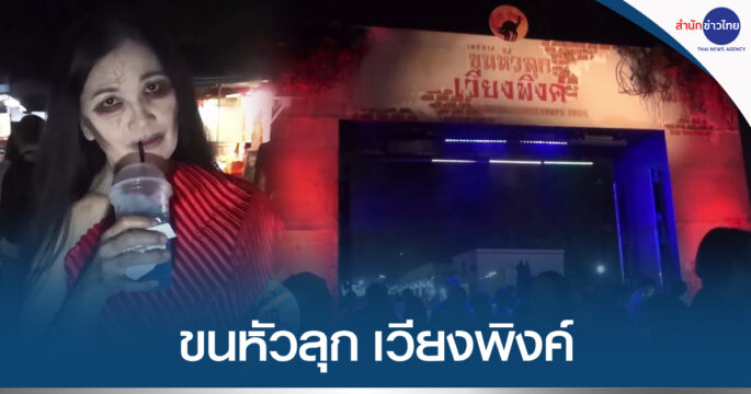 คืนแรกสุดคึกคัก นักท่องเที่ยวแห่สัมผัสความหลอน เที่ยวงานเทศกาล “ขนหัวลุก เวียงพิงค์” ตอน แม่นาคแอ่วเหนือ ที่สวนสาธารณะบนที่ดินรถไฟ จ.เชียงใหม่ บางคนแต่งผีมาร่วมสร้างสีสันด้วย