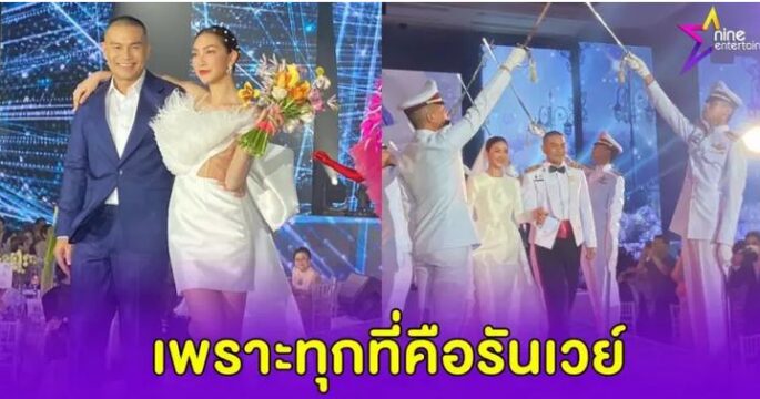 ยิ่งใหญ่ อลังการ ไม่เสียยี่ห้อคู่สามีภรรยาดีกรีด็อกเตอร์ “แพนเค้ก-พี่หมี” ในงานฉลองวิวาห์หวานเมื่อค่ำวานนี้ ที่หอประชุมกองทัพเรือ