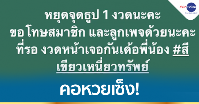 คอหวยมีเซ็ง! งวดนี้เมื่อแม่น้ำหนึ่งเจ้าแม่ใบ้หวยชื่อดัง โพสต์เฟซบุ๊กระบุ “หยุดจุดธูป 1 งวดนะคะ ขอโทษสมาชิกและลูกเพจด้วยนะคะที่รอ งวดหน้าเจอกันเด้อพี่น้อง # สีเขียวเหนี่ยวทรัพย์”