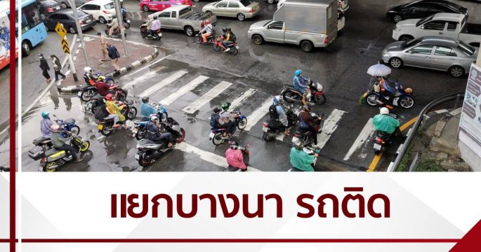 จราจรเช้าวันจันทร์ ชุ่มฉ่ำ น้ำท่วมขังหลายจุด บริเวณแยกบางนา รถติดขัดทุกด้าน ส่วนถนนรามคำแหง รถติดมาก