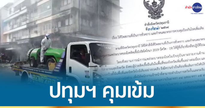 จ.ปทุมธานี ปิดถานที่เสี่ยงเพิ่ม ห้ามจัดกิจกรรมรวมกลุ่มมากกว่า 10 คน พร้อมขอความร่วมมืองดออกนอกบ้าน 21.00-04.00 น. มีผลพรุ่งนี้ (27 เม.ย.) เป็นต้นไป