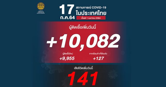 โควิดวันนี้ วิกฤติ ป่วยตายสูงสุด ติดเชื้อรวม 10,082 ราย ยืนยันสะสม 363,126 ราย (ตั้งแต่ 1 เมษายน) เสียชีวิตพุ่ง 141 ราย หายป่วยกลับบ้าน 6,327 ราย