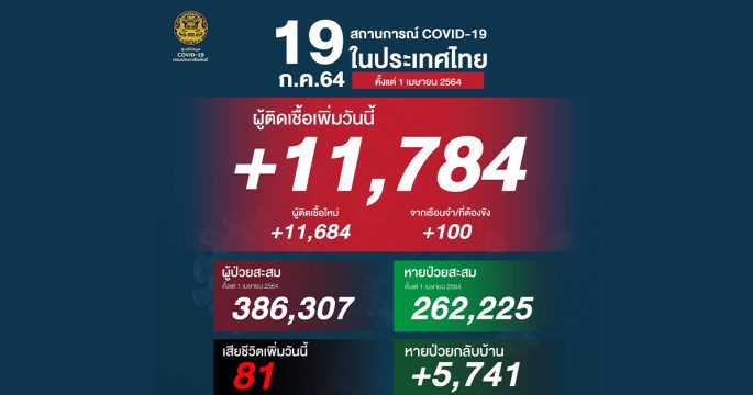 โควิดวันนี้ ยังน่าห่วง ยอดติดเชื้อรวม 11,784 ราย ยืนยันสะสม 386,307 ราย (ตั้งแต่ 1 เมษายน) หายป่วยกลับบ้าน 5,741 ราย เสียชีวิตอีก 81 ราย