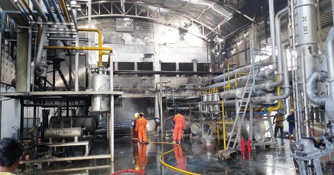 ถังเครื่องกลั่นน้ำมันโรงงานระเบิดไฟคลอกดับ 2