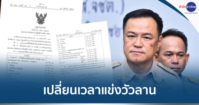 โฆษก มท. เผยกฎกระทรวงเปลี่ยนเวลาแข่งวัวลาน มีผลบังคับวันนี้ “อนุทิน” กำชับผู้ว่าฯ วางแนวทางอนุญาตตรวจติดตามการละเล่นให้เป็นไปตามหลักเกณฑ์และเป้าหมายเพื่อส่งเสริมการท่องเที่ยว สร้างอาชีพในท้องถิ่น