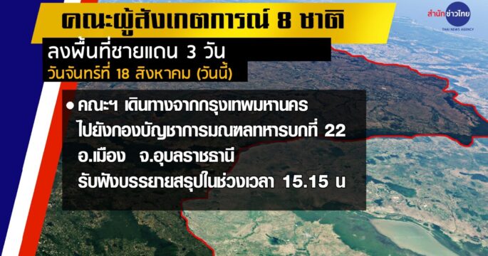 18 ส.ค.- คณะผู้สังเกตการณ์ชั่วคราว 8 ชาติ เตรียมลงพื้นที่ชายแดนบ่ายวันนี้ รับทราบข้อเท็จจริงกำลังพลเหยียบระเบิด-กัมพูชาละเมิดข้อตกลงหยุดยิง ช่วงบ่ายวันนี้ (18 ส.ค.) กองบัญชาการกองทัพไทยจะนำคณะผู้สังเกตการณ์ชั่วคราว (IOT) 8 ประเทศ ประกอบด้วย บรูไน มาเลเซีย ลาว อินโดนีเซีย เมียนมา ฟิลิปปินส์ สิงคโปร์ และเวียดนาม นำโดยผู้ช่วยทูตทหารมาเลเซียประจำกรุงเทพฯ เดินทางไปตรวจเยี่ยมการปฏิบัติงานในพื้นที่ศูนย์ปฏิบัติการกองทัพภาคที่ 2 (กองกำลังสุรนารี) เพื่อรับทราบข้อเท็จจริงเกี่ยวกับการละเมิดข้อตกลงหยุดยิงของกัมพูชา ตามบันทึกข้อตกลงจากผลการประชุมคณะกรรมการชายแดนทั่วไป (GBC) ไทย-กัมพูชา รวมทั้งการขัดขวางปฏิบัติการเก็บกู้ทุ่นระเบิดของศูนย์ปฏิบัติการทุ่นระเบิดแห่งชาติ กำหนดการในวันแรกคณะฯ จะเดินทางจากกรุงเทพมหานคร ไปยังมณฑลทหารบกที่ 22 จ.อุบลราชธานี เพื่อรับฟังการบรรยายสรุปในช่วงเวลา 15.15 น. วันที่ 19 ส.ค.68 เดินทางลงพื้นที่ช่องอานม้า อ.น้ำยืน จ.อุบลฯ และต่อไปยังผามออีแดง อ.กันทรลักษ์ จ.ศรีสะเกษ เพื่อรับฟังบรรยายสรุป ในประเด็นการละเมิดข้อตกลงหยุดยิง และไปยังฐานกฤษณา-ฐานปราบศึก ใกล้ภูมะเขือ พร้อมรับชมภารปฏิบัติงานของหน่วยปฏิบัติการหุ่นระเบิดด้านมนุษยธรรมที่ 2 […]