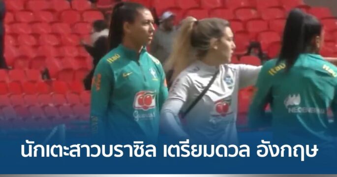 นักเตะสาวบราซิล แชมป์ฟุตบอลโคปา อเมริกา 2022 ลงสนามฝึกซ้อม เตรียมดวล แข้งสาวสิงโตคำราม อังกฤษ แชมป์ยูโร 2022 ในศึกฟุตบอลหญิง ไฟนอลลิสซิม่า ที่สนามเวมบลีย์ คืนนี้