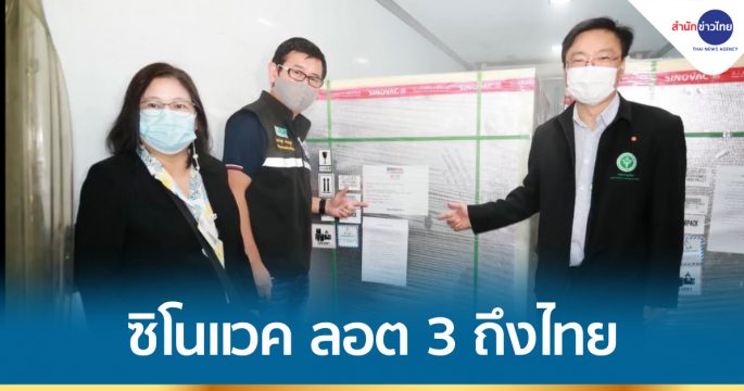 วัคซีนซิโนแวค ลอต 3 จำนวน 1 ล้านโดส ถึงไทยแล้ว หลังจากนี้วัคซีนทั้งหมดจะถูกส่งไปที่คลังสำรองวัคซีน จากนั้นจะส่งให้กรมวิทยาศาสตร์การแพทย์ตรวจสอบคุณภาพ มาตรฐาน ก่อนส่งให้กรมควบคุมโรค และกระจายไปตามสถานพยาบาลต่างๆ