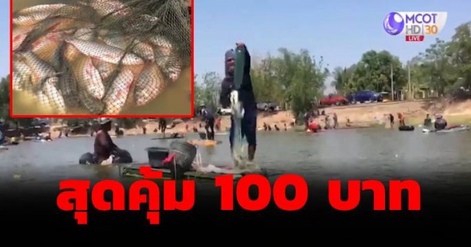 สุดคุ้ม! เปิดสระน้ำสาธารณะให้ชาวบ้านหว่านแหจับปลา ซื้อบัตรราคาเพียง 100 บาทเท่านั้น ระดมทุนเข้ากองทุนหมู่บ้าน จัดซื้อพันธุ์ปลามาปล่อยเพื่อขยายพันธุ์