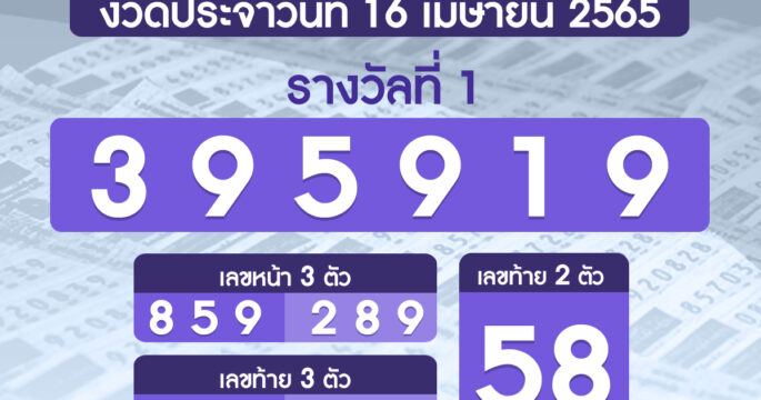 ผลรางวัลสลากกินแบ่งรัฐบาล งวดวันที่ 16 เมษายน 2565