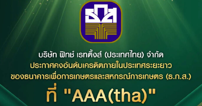 ธ.ก.ส. ได้รับการคงอันดับเครดิตจาก ‘ฟิทช์ เรทติ้งส์’ ที่ ‘AAA (tha)’ แนวโน้มอันดับเครดิต Stable และระยะสั้นที่ ‘F1+ (tha)’ เป็นปีที่ 10 สะท้อนฐานะการเงินมั่นคง