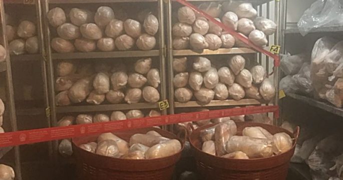 About 1,900 kilogrammes of pig parts were seized at cold storage warehouses in Bangkok.