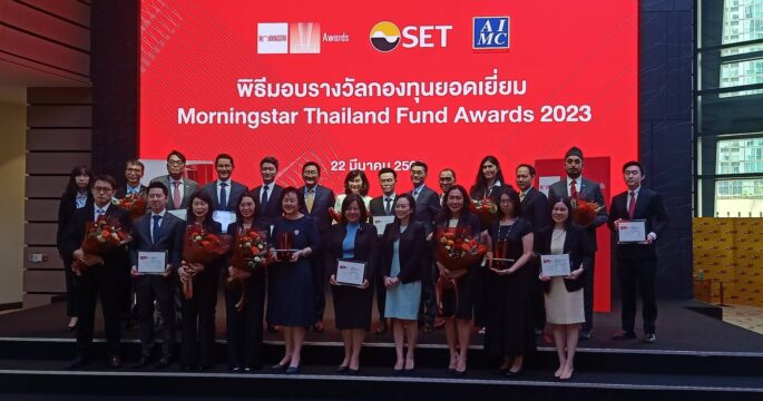 กรุงเทพฯ 22 มี.ค.-ตลาดหลักทรัพย์ฯ ร่วมกับ สมาคมบริษัทจัดการลงทุน มอบรางวัล Morningstar Thailand Fund Award 2023 ให้ 8 กองทุนที่มีผลประกอบการยอดเยี่ยมประจำปี เผย สร้างอัตราผลตอบแทนกองทุนเฉลี่ยร้อยละ7.18 ต่อปี ผู้ถือหน่วยลงทุนมากกว่า 7.5 ล้านบาทบัญชี