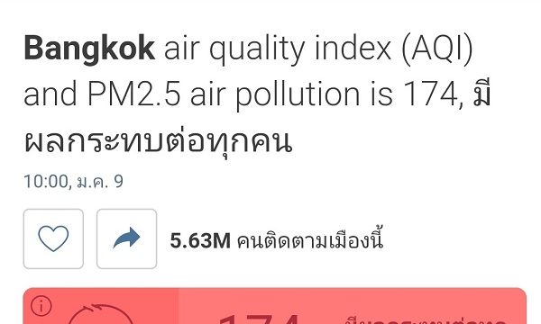 Bangkok was ranked the world’s eight worst air quality on Thursday morning on Air Visual, a popular application, monitoring the world’s air quality.