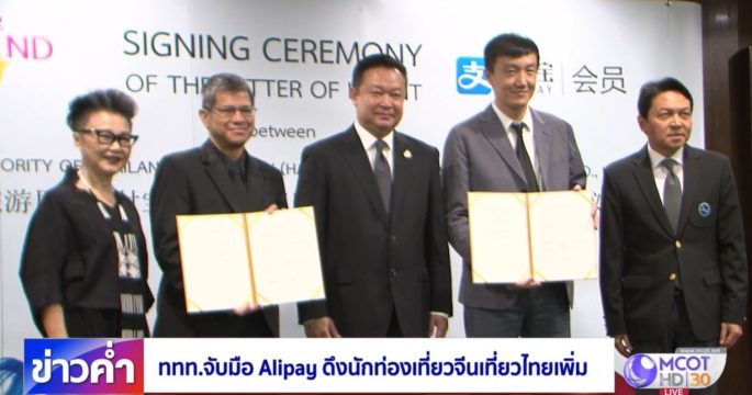 ททท.จับมือ Alipay ดึงนักท่องเที่ยวคุณภาพจากจีน หวังกระตุ้นให้จำนวนนักท่องเที่ยวและรายได้จากการท่องเพิ่มขึ้นร้อยละ 10 ตามเป้าหมาย